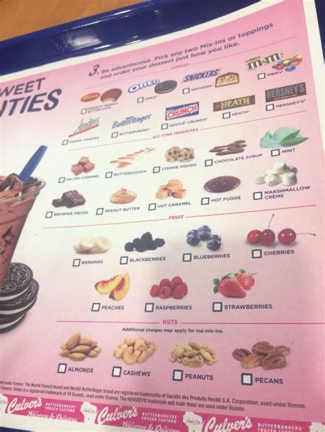 You can add as many toppings as you. Web culver’s ice cream toppings culver’s ice cream menu. We make our fresh frozen custard right behind the counter.